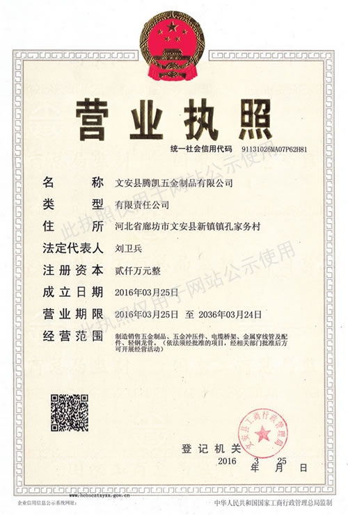 文安縣騰凱五金制品有限公司創(chuàng)建于2006年,是電纜橋架制造廠(chǎng)商,位于河北省文安縣新鎮(zhèn)工業(yè)區(qū),東連京開(kāi)線(xiàn)106國(guó)道,北接津保高速公路,背靠京九大動(dòng)脈,地處北京、天津、保定三角地帶,交通便捷,通訊發(fā)達(dá)。